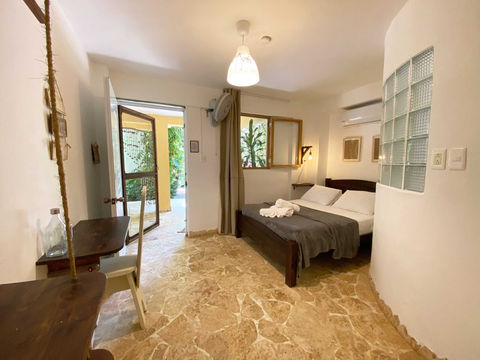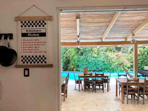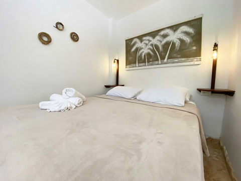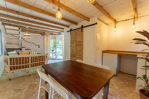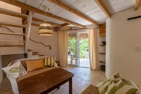Our common areas include cozy chill-out spots, lush tropical gardens, two swimming pools, a stunning yoga loft open all day for your use, and a fully equipped shared kitchen. In the kitchen, you’ll find everything you need to cook, plus complimentary drinking water, coffee, tea, and bananas available all day.​